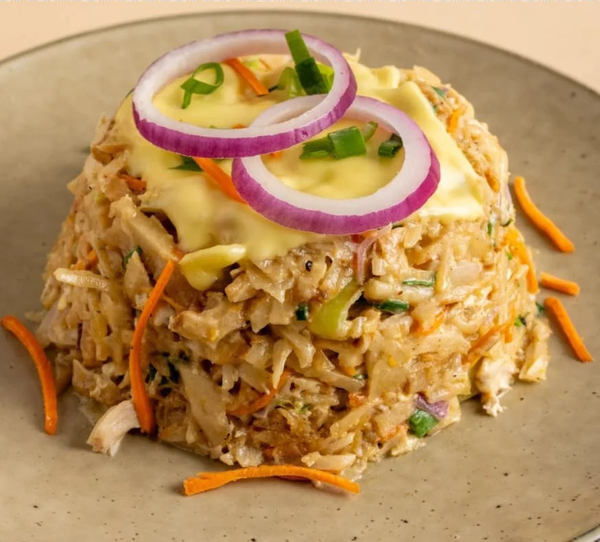 Cheese Kottu Roti – Sliced flatbread, leek, carrot, ginger, garlic, chili flakes, bell pepper, onions, and cheese. Spice levels: No spice, Mild, Medium, Hot, Very hot
